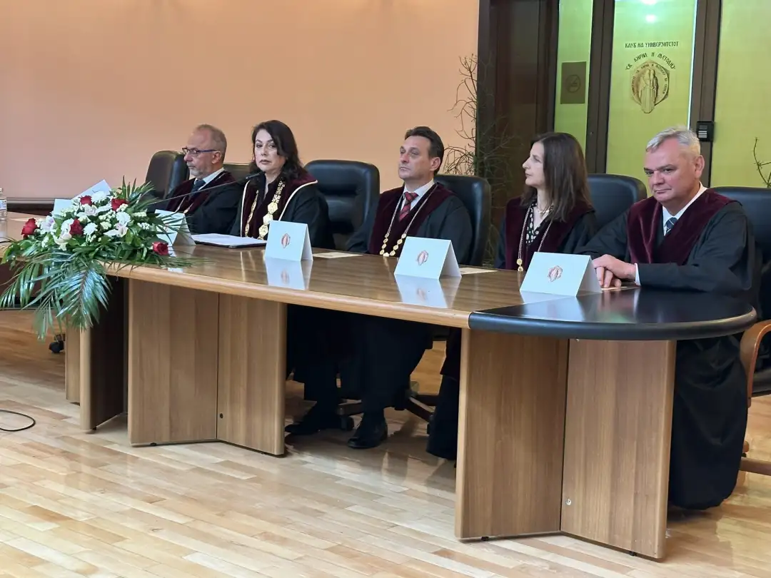 „Го зајакнавме системот за обезбедување квалитет, со воведување на стандардизирани процедури и алатки за вреднување на наставата и истражувањата, отворивме Центар за отворена наука, кој им овозможува на нашите истражувачи подобар пристап до податоци, литература и меѓународна соработка , многу поинтенизвно се вклучивме во европската програма Horiznot Europe, преку која добивме и управуваме со проекти со значајно финансирање, започнавме дигитална трансформација на процесите – од упис на студенти, преку административно управување, до онлајн платформа за учење и во партнерство со Алијансата ACROSS EU отпочнавме неколку Хоризонт и други проекти, кои ни обезбедуваат интернационализација на наставата и мобилност на студентите и кадарот“, наведе Ангелова.