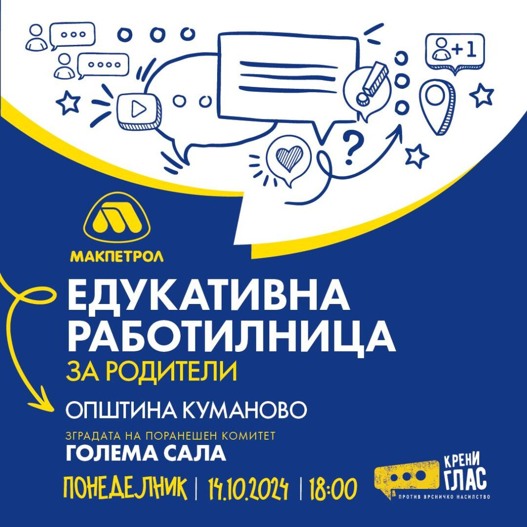Во повеќе од 150 училишта во 26 општини „Макпетрол“ преку кампањата „Стоп за булинг“ овозможи работилници за ученици, а сега ќе организира едукативни средби наменети за родители. На 5 октомври во Општина Центар, во ООУ „Јохан Хајнрих Песталоци“, се одржа првата ваква работилница. Со присуство на поголем број родители, на оваа средба беа споделени знаења за врсничкото насилство, се водеше интересна дискусија, а истото се очекува и утре во Куманово.