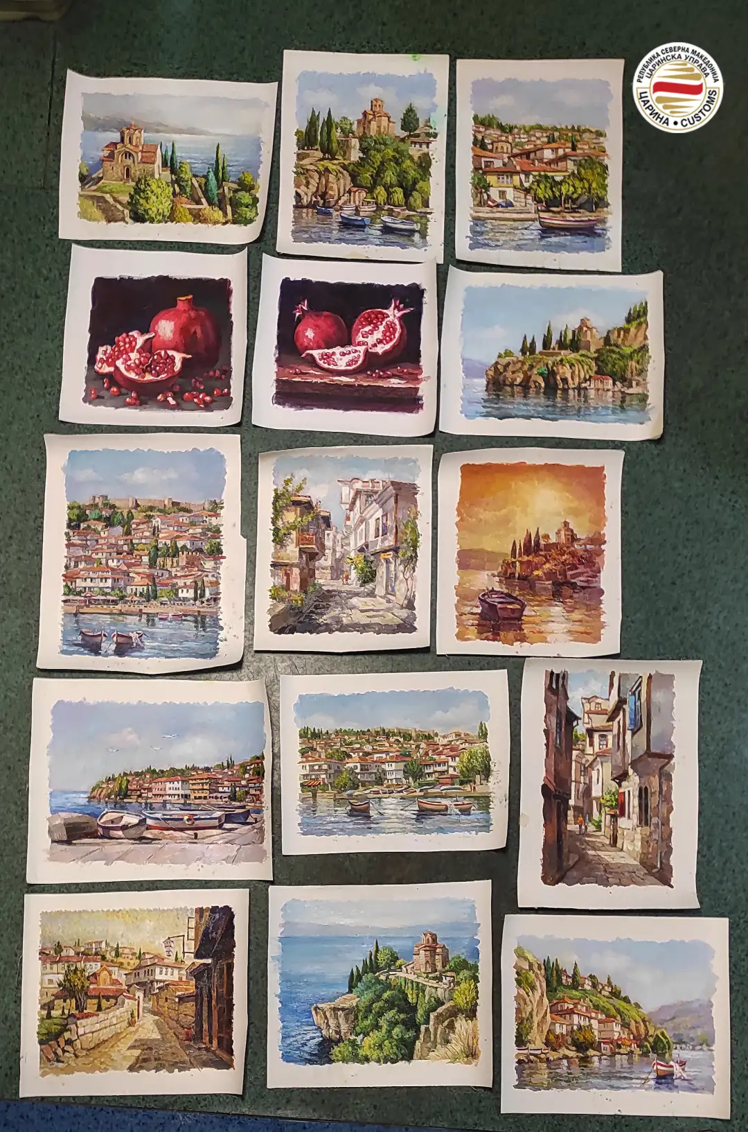 Запленети биле и уметнички слики. Станува збор за 16 уметнички слики, масло на платно, без потпис од авторот и без рамка, откриени при контрола на автомобил со македонски регистарски таблички, управуван од македонски државјанин, пријавен за влез во државата на граничниот премин Деве Баир. На прашање на царинските службеници дали има да пријави нешто за царина, возачот одговорил негативно. Сепак бил извршен преглед на возилото, при што во багажниот простор биле пронајдени сликите завиткани во картонска ролна. Непријавените слики биле привремено задржани, а против возачот ќе биде поднесено барање за поведување прекршочна постапка.