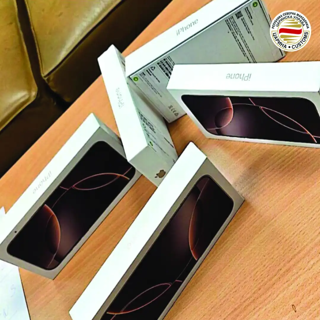 Запленети биле пет мобилни телефони ајфон 16, откриени на Меѓународниот аеродром – Скопје, при контрола на патните торби на македонски државјанин, кој допатувал со лет од Истанбул.