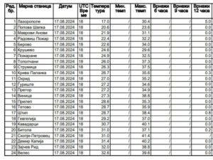 Живата во термометарот во Демир Капија во текот на денот се искачи на 40,2°C, во Кавадарци на 40,1°C додека во Скопје на мерното место во Зајчев Рид се измерени 38,9°C, но веројатно во бетонските делови на главниот град температурата го преминала 40-от степен. Дури и во Маврови Анови и во Лазарополе се измерени над 30°C.