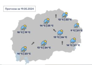 Максималните дневни температури се очекува да се движат од 19 степени на повисоките места, 25 во Скопје, до 27 на југоистокот од Македонија.