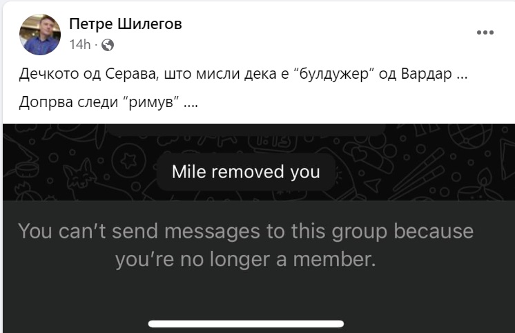 Шилегов реагира откако е тргнат од некоја партиска група на социјалните мрежи од администраторот Миле. Се работи за генералниот секретар на СДСМ Миле Зечевиќ.