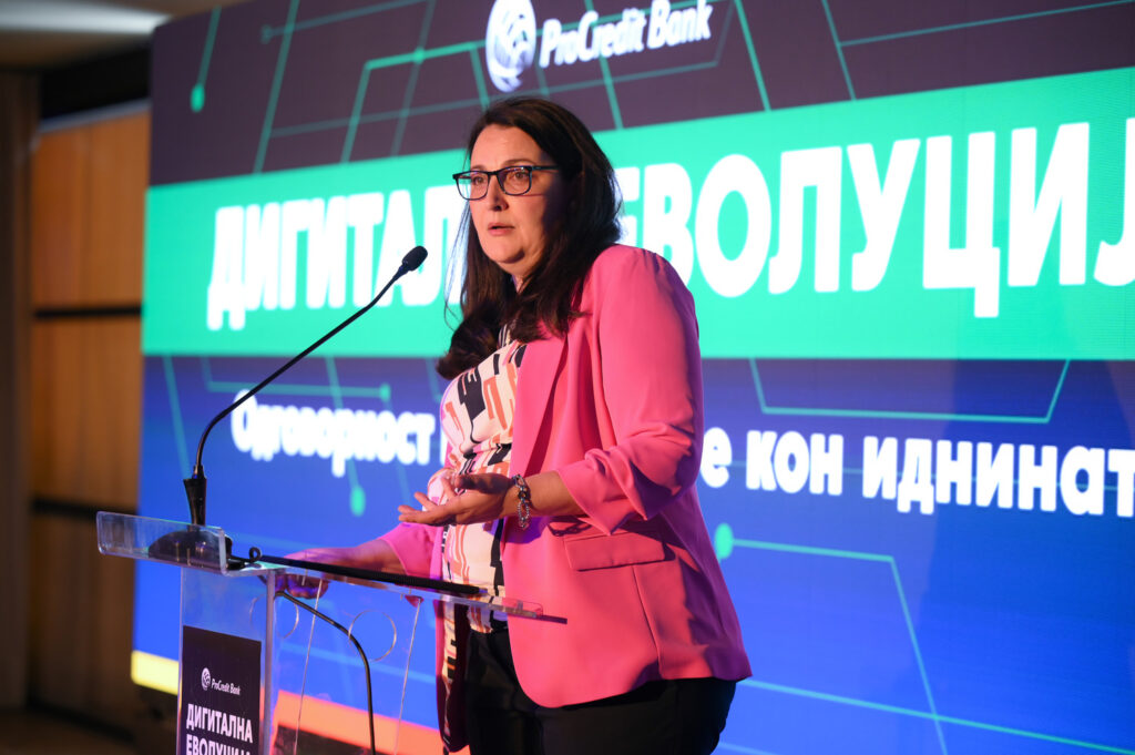 Емилија Спировска, член на Управниот одбор на Прокредит Банка, во своето обраќање на настанот ја нагласи важноста на дигитализацијата за малите и средните претпријатија.