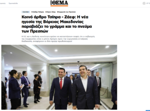 Двајцата поранешни премиери на Македонија и Грција кои го постигнаа договорот, го потпишаа и промовираа Преспанскиот договор ги повикуваат ЕУ и меѓународната заедница јасно да му стават на знаење на новото раководство на „соседната земја“, како што е наведено во објавата на Прототема, дека почитувањето на Договорот е единствениот пат до европскиот пристапен процес.