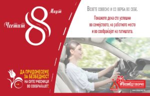 „Возете одговорно и безбедно, за вас и за вашите најблиски. Покажете дека сте успешни во семејството, на работно место и во сообраќајот на патиштата. Честит 8 Март!“, вели претседателката на РСБСП Гордана Кожуваровска.