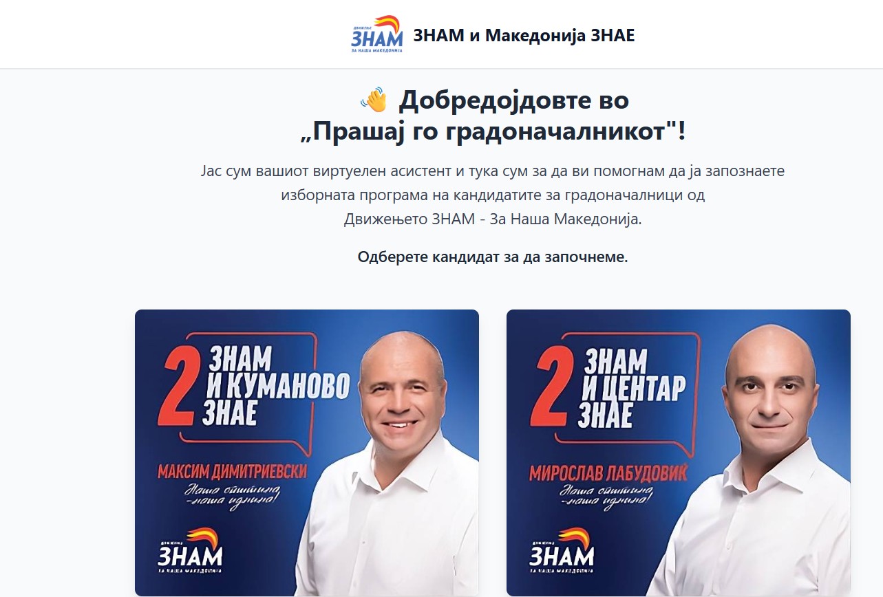 „Со оваа иновација, Движењето ЗНАМ овозможува директен и брз дијалог меѓу граѓаните и кандидатите за градоначалници на движењето. Платформата им овозможува на граѓаните да поставуваат прашања, да добиваат прецизни и навремени одговори, како и да се информираат за сите проекти, програми и визии на кандидатите, истакна Маја Рисова Мутлулар, член на Централниот Одбор на Движењето ЗНАМ за наша Македонија.