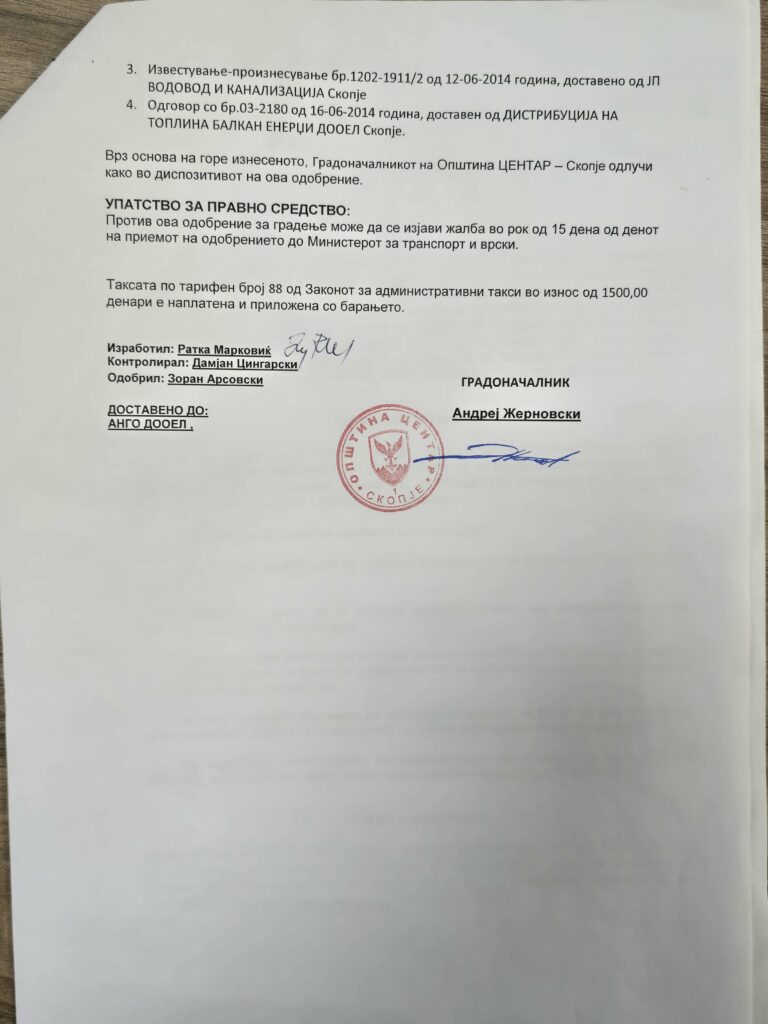 За крај, би сакале да ја потсетиме јавноста дека за парцелата пред Собранието за кое се зборува во прес-конференцијата на СДСМ, одобрението за градба го има потпишано нивниот поранешен најнеуспешен градоначалник на Центар и кандидат во најава за следните локални избори, Андреј Жерновски“, соопшти ЗНАМ.