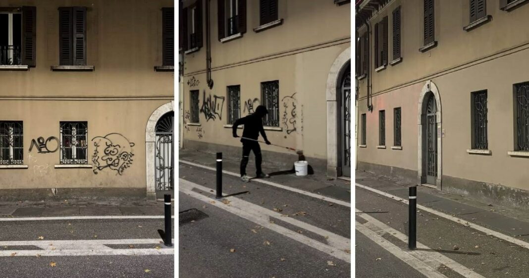 Имено, анонимниот човек кој го користи прекарот Гост Питур на социјалните мрежи чисти вандализирани ѕидови ноќе низ Бреша во Италија. Иако не сака да го открие својот идентитет, тој води страница на Инстаграм каде што објавува фотографии од реставрацијата на фасадите.
