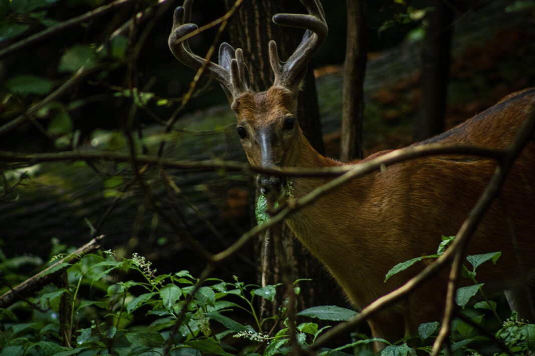 Мажјаците елени со бел опаш (Odocoileus virginianus) се познати по тоа што оставаат траги во шумата за време на есенската сезона на парење. Тие ги тријат своите рогови од дрвјата и шумското тло, ја отфрлаат кожата од роговите – меката, богата со крв „кожа“ што ги покрива закосените рогови додека растат – и оставаат мирисни траги во форма на жлездени секрети, урина и измет, пренесува Сајенс алерт.