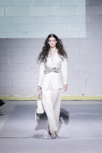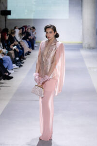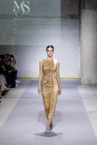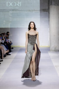 Олгица Ѓоргиева со колекцијата „Metamorfosis“, поддржана од Nera Caffe, понуди тивка, но сигурна завршница. Инспирирана од личната трансформација и симболиката на пеперутката, колекцијата се развива низ минималистички силуети, рачна изработка и прецизно обликувани детали. Природните тонови внесуваат стабилност, додека суптилниот леопард принт се појавува како знак на инстинкт и самодоверба, дискретно, но присутен.