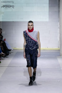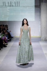 Групната ревија на Марија Станојовска и Маригoна Рахмани ја стабилизираше оваа енергија. Кај Станојовска доминираше контролиран, речиси архитектонски пристап кон формата, додека кај Рахмани се појави мекост и елеганција, со нагласена текстура и движење. Овој дел од програмата функционираше како премин, од колективна експресија кон индивидуален авторски став. И токму таму, без потреба од спектакл, дојде финалето.