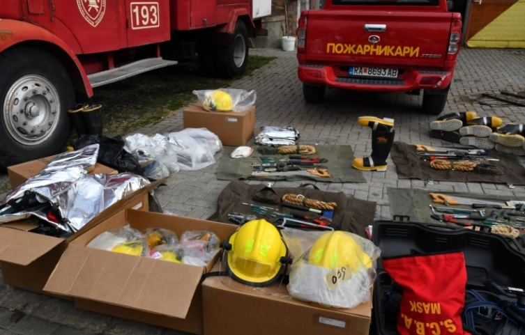 Опремата се состои од противпожарни шлемови, гумени чизми, сет алати (секира, јаже,клешти, пила), противпожарни огноотпорни одела, балаклави и носачи за белодробен апарат со маска.