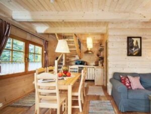 Зад собата се наоѓа и мала, но целосно функционална бања со стаклена туш-кабина и тоалет со целосна големина. Удобно е, топло и како создадено за „гушкање под ќебе“, како што вели еден коментар за оваа мала викендица.