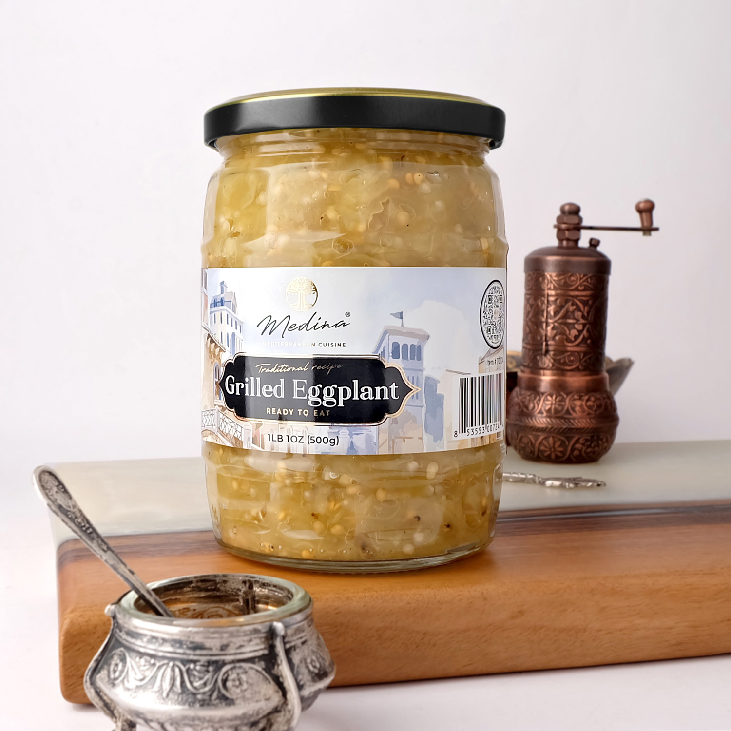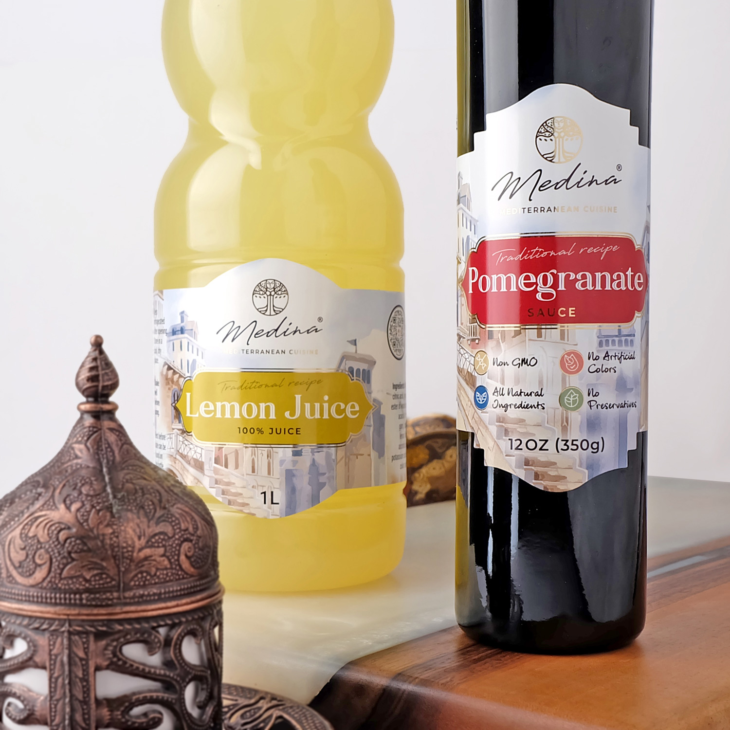 Дизајнот и визуелниот идентитет композитно ги одразува преференциите на брендот и преку елементите ги пренесува главните вредности што се лесно читливи и визуелно консумирани од потрошувачите. Изгледот на Medina ја одразува суштината на медитеранската богата и разновидна кулинарска традиција.