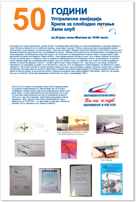 На свеченоста ќе бидат доделени признанија за особен придонес во развојот на ултралесната авијација и слободното летање со крилата – змејови и параглајдери. Ќе се одржи и промоција на зборникот „Крила во слободен лет“, прашања и задачи за пилоти на змај и параглајдер.