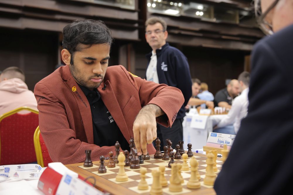 Велемајсторот Читамбарам со црни фигури, на четвртата табла, во остра позиција од Сицилијанската одбрана тактички го надмудри својот противник.