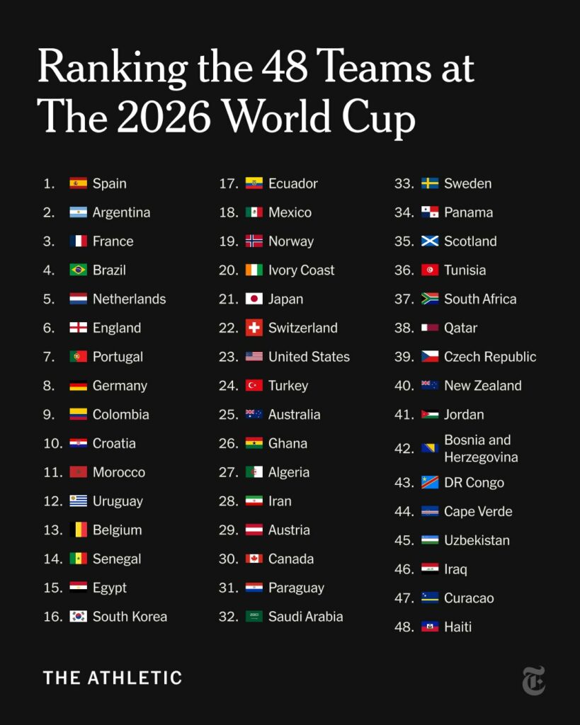 Дискутабилно е рангирањето на Холандија пред Англија и Германија. Јужна Кореја пред Јапонија. Египет пред повеќе селекции кои се подобри од нив. Рангот на Турција која има многу добра генерација. Босна и Херцеговина е зад селекции како Нов Зеланд, Јордан…