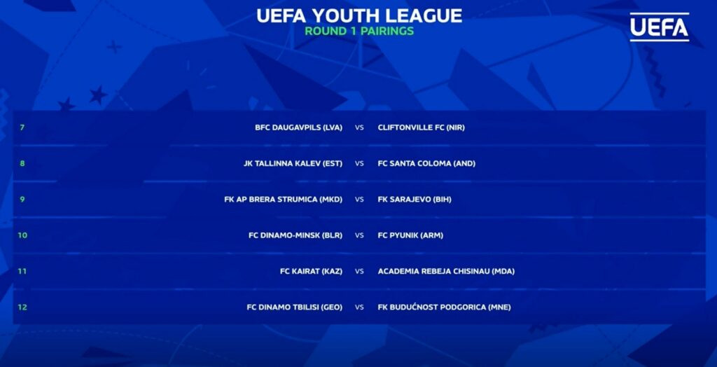 Младинците на Брера првиот натпревар ќе го играат на домашен терен на 18. септември, додека реваншот е на 2. октомври во Сараево.