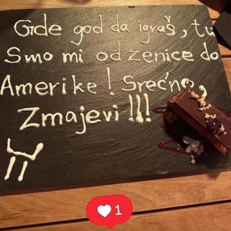 „Каде и да играш, тука сме ние од Зеница до Америка! Среќно Змејови!!!“, гласеше пораката која беше напишана на при сервирањето на десертот.