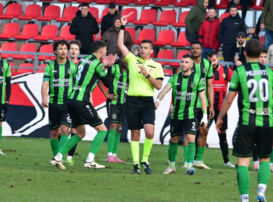 „Во однос на денешниот натпревар од 19. коло на Прва МФЛ помеѓу ФК Вардар и ФК Башкими, во 87. минута беше доделен директен црвен картон за играчот со бр. 3 од гостинската екипа поради плукање кон судијата.