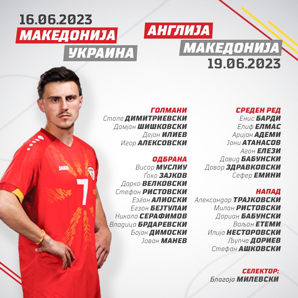 Пред Македонија се два квалификациски меча за ЕП 2024, на 16. јуни во Скопје ја пречекуваме Украина, а на 19. јуни гостуваме кај Англија.