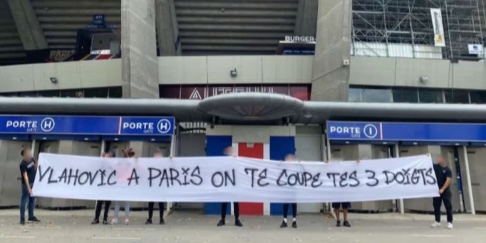 „Влаховиќ ако дојдеш во Париз, ќе ти ги исечеме трите прста“, е пораката од Ултрас фановите на ПСЖ до Влаховиќ кој често своите голови ги прославува со кренати три прста.