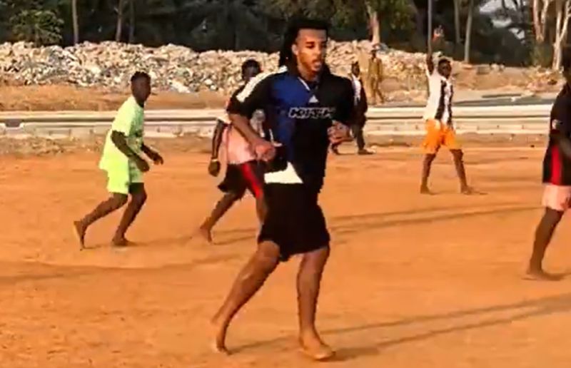 Тој малиот одмор го искористи да отиде до Бенин и да усреќи деца играјќи фудбал со нив.