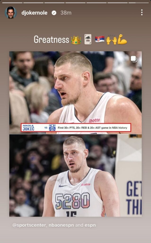 Учинокот на Јокиќ беше 31 поен, 22 асистенции и 21 скок. Сите го поздравуваа тоа што го направи српскиот кошаркар, а реакција имаше и од неговиот сонародник, Новак Ѓоковиќ.