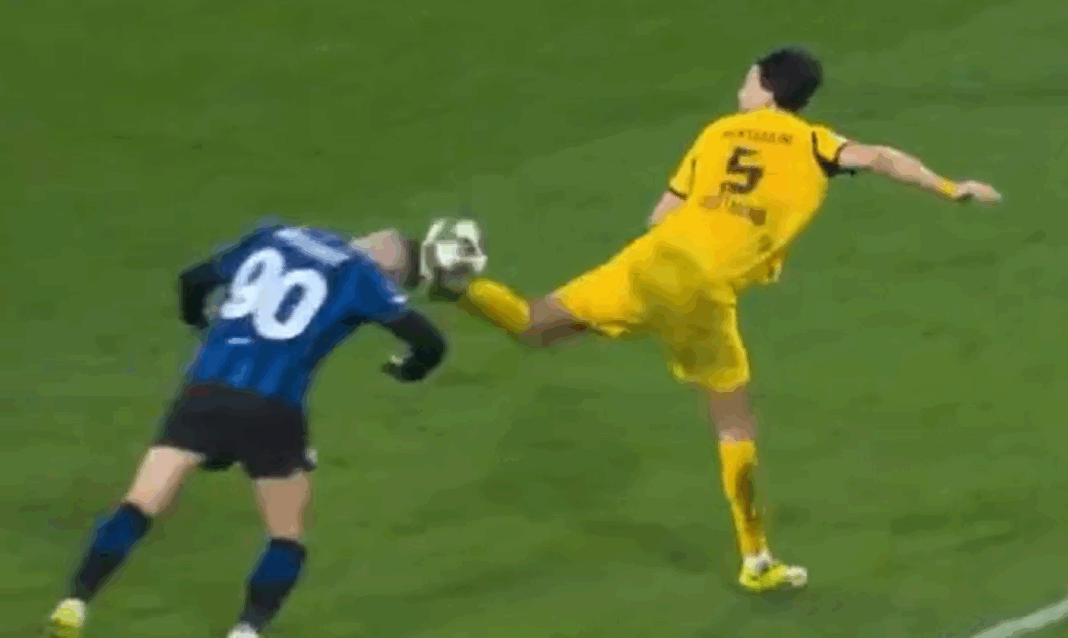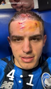 По натпреварот Крстовиќ покажа колкава била цената за изборениот пенал, а на фотографијата се гледа дека на своето чело на неколку места има рани од крампоните на копачката на Бенсебаини.