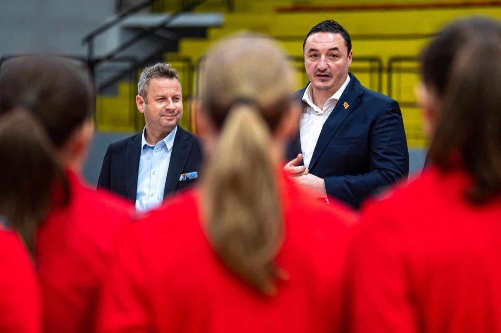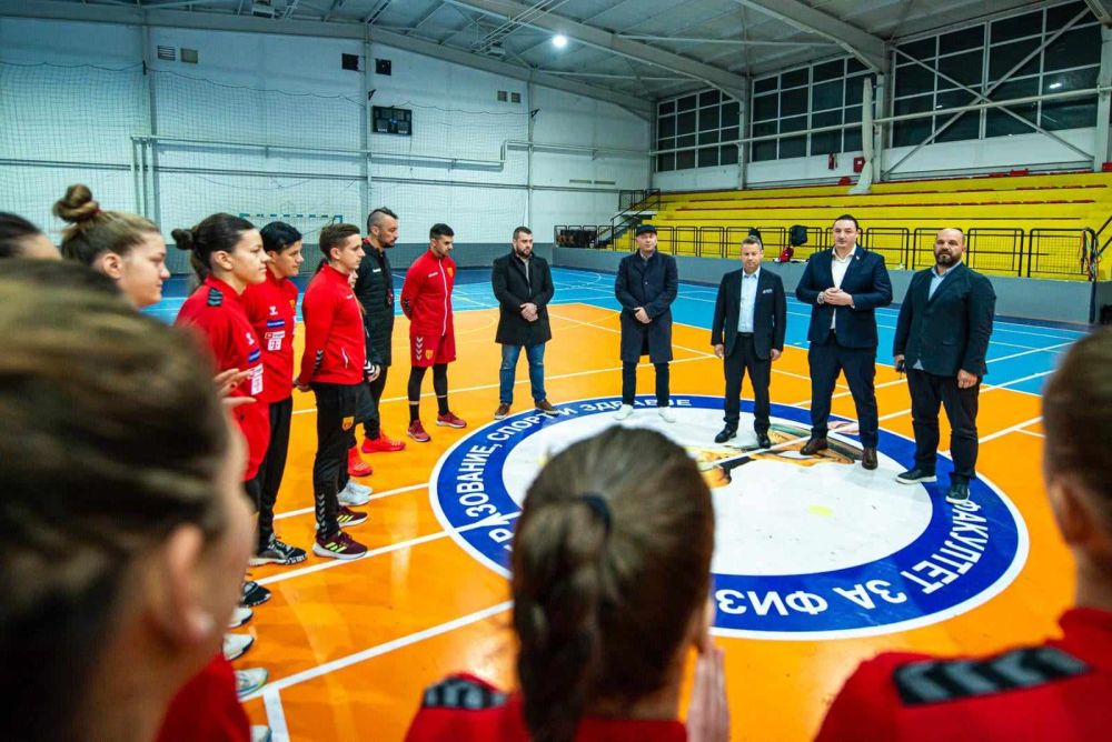 Министерот Ристовски заедно со претседателот на Ракометната федерација на Македонија, г-дин Живко Мукаетов и генералниот секретар, г-дин Филип Милошевски ги поздрави репрезентативките на денешниот последен тренинг пред заминувањето за Пореч, Хрватска каде ќе ги одработат завршните подготовки пред настапот на ЕП 2024.