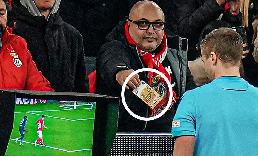 A Benfica fan tried to offer referee Glenn Nyberg cash while he checked VAR for a potential penalty.