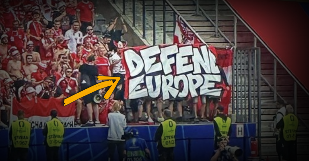 На дуелот со Полска, австриските навивачи извадиле знаме на кое пишува „Брани ја Европа“.