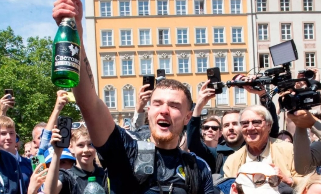 До неговата крајна дестинација, Минхен каде што Шкотска го игра првиот натпревар испешачил 1.609 километри.