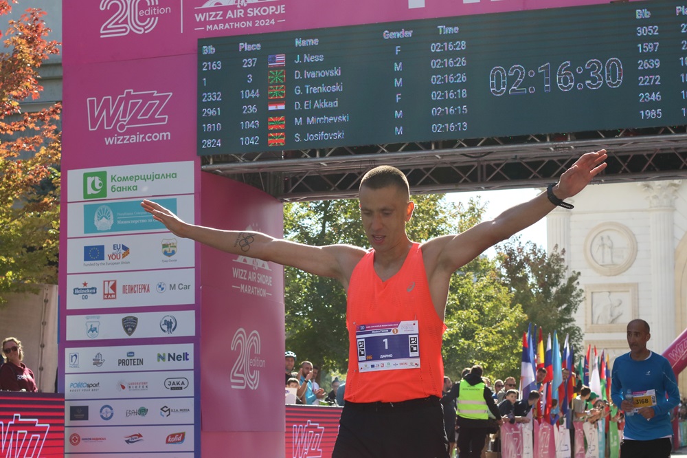 Според резултатите, во конкуренција на македонските тркачи во маратонската трка, први се Дарио Ивановски и Адријана Поп Арсова како најбрзи Македонци на годинешната спортска манифестација, која ги разбуди скопските улици.