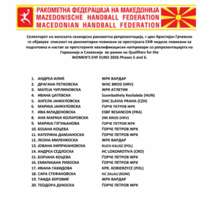Во составот нема да биде една од клучните фигури, Сара Ристовска, која поради повреда нема да може да помогне на националниот тим.