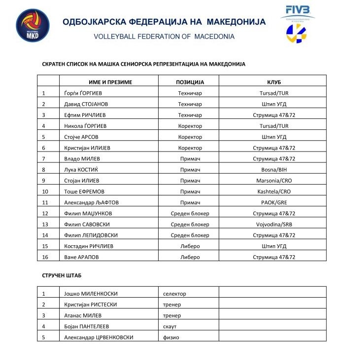 Јошко Миленковски го објави списокот на одбојкари за престојните квалификациски натпревари против Грција и Грузија за пласман на Европското првенство 2026.