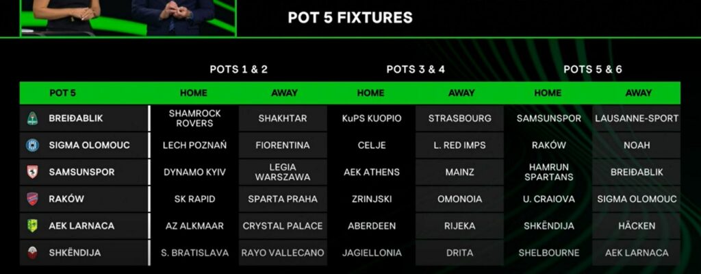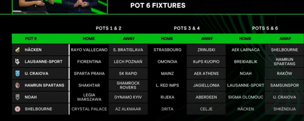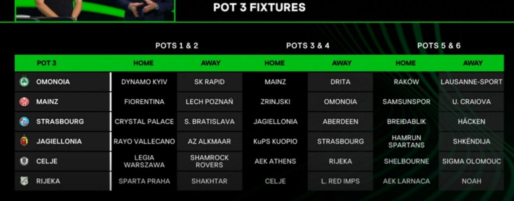 Останатите противници се Слован Братислава, Јагелонија, Дрита, Шелбурн и АЕК Ларнака.