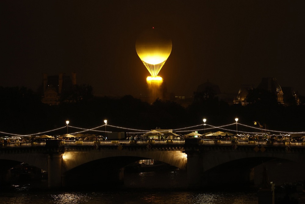 epa11498182 A hot air balloon lifts the cauldron during the Opening Ceremony of the Paris 2024 Olympic Games, in Paris, France, 26 July 2024. EPA-EFE/YOAN VALAT