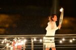epa11498158 Torchbearer Amelie Mauresmo carries the Olympic flame during the Opening Ceremony of the Paris 2024 Olympic Games, in Paris, France, 26 July 2024. EPA-EFE/Pauline Ballet / POOL