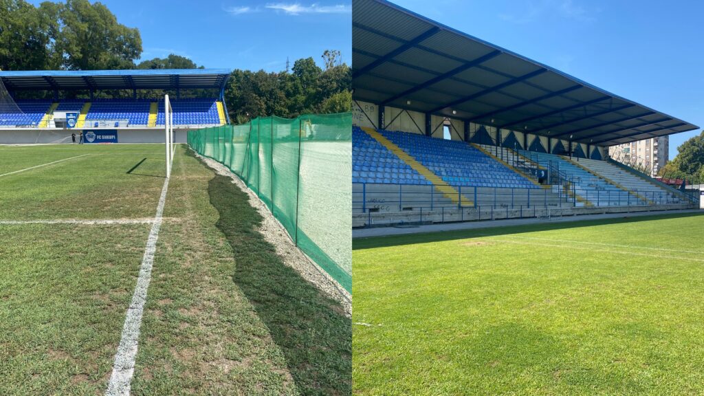 – несоодветна заштитна ограда на јужната трибина, во која има дупки и други небезбедни елементи што претставуваат ризик за учесниците на натпреварот (фудбалерите, официјалните лица и сите присутни);