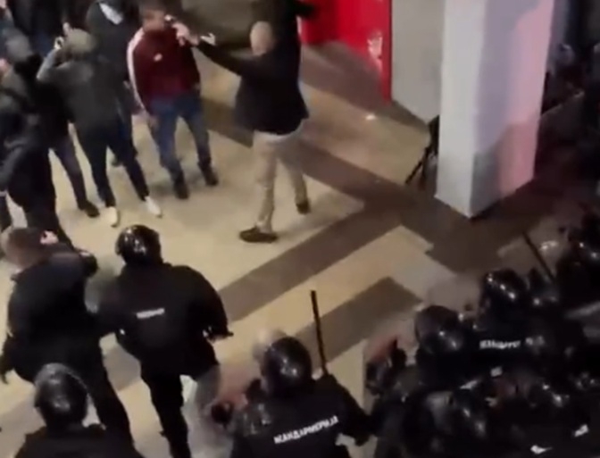 Излезе снимка на која се гледа жестока тепачка меѓу навивачите на Црвена звезда и полицијата во салата.