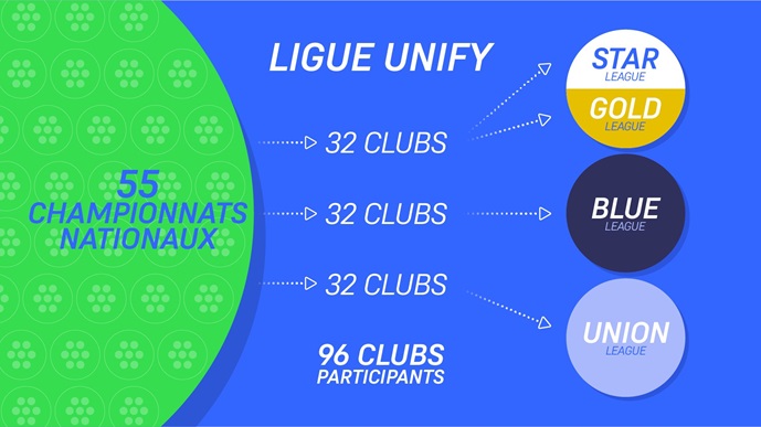 „Јунифај Лигата“ ќе треба да брои 96 клубови кои ќе бидат поделни во четири лиги – на врвот ќе биде Стар (Ѕвезда) Лига во која ќе има 16 клубови, потоа ќе следи Голд (Златна) Лига во која исто така ќе има 16 клубови, потоа следи Блу (Сина) Лига со 32 клуба, а последна е Унион (Унија) Лига која исто така ќе брои 32 клуба.