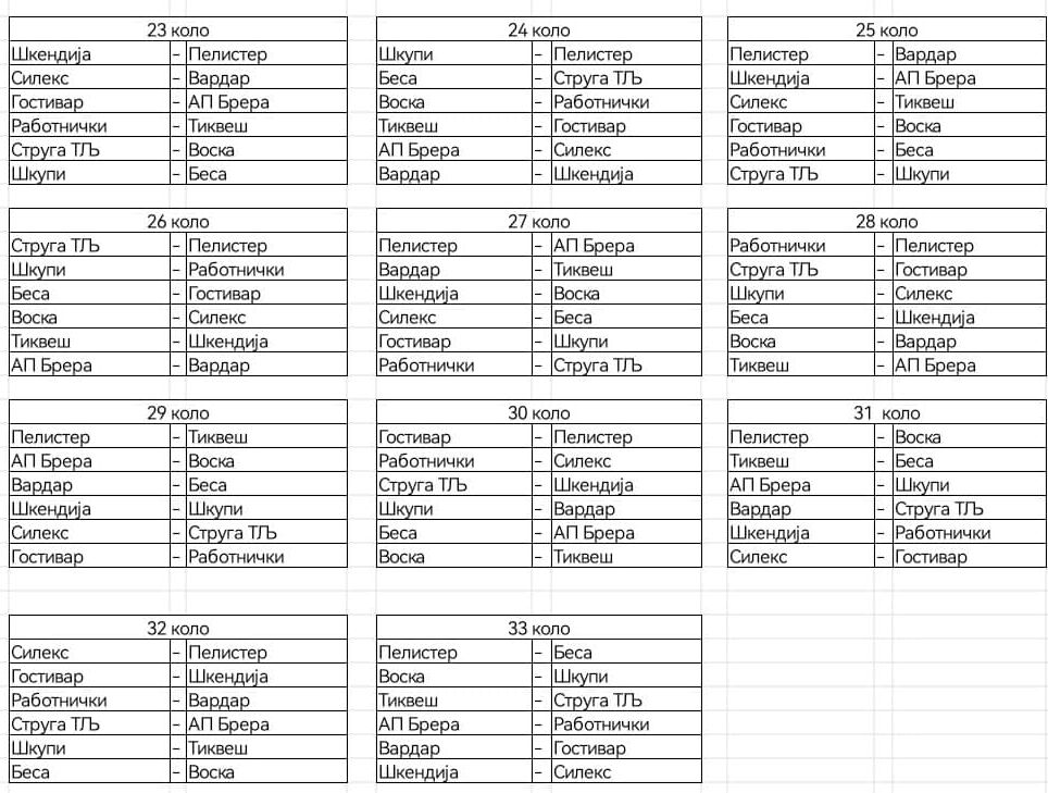 Веќе во 24. коло е големото дерби меѓу Вардар и Шкендија, во 25. коло вардарци играат уште едно мега дерби, одат кај Пелистер во Битола.