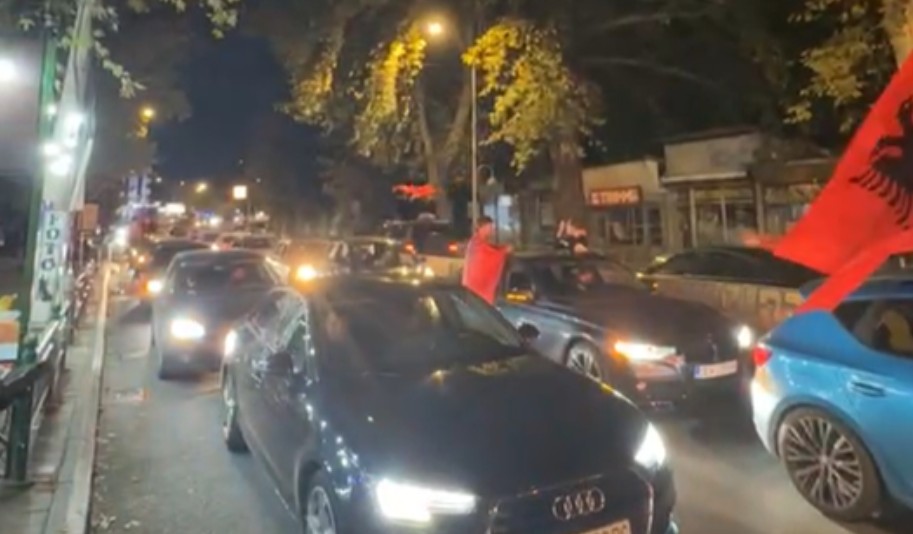 Ноќеска беа блокирани улици во Скопје, Куманово, Тетово… Албанците ја славеа победата над Србија. Можеа да се видат и спорни знамиња, обележја на УЧК и националистички извикувања.