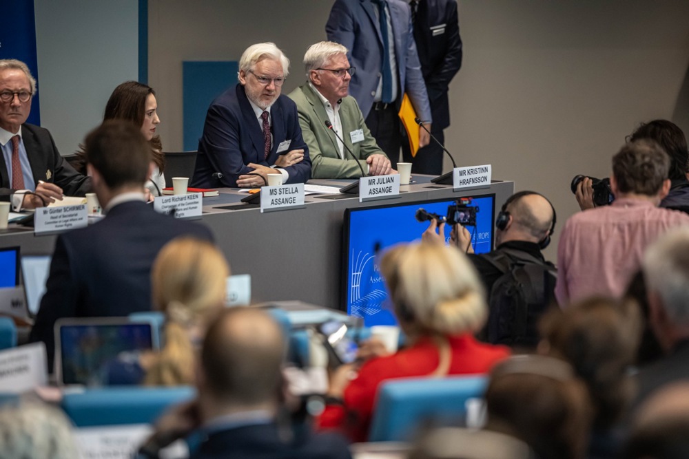Говорејќи пред Комитетот за правни прашања и човекови права на Парламентарното собрание на Советот на Европа во Стразбур во своето прво јавно појавување по неговото ослободување во јуни, Асанж истакна дека владата на Соединетите Држави „инсистирала“ тој да се согласи да не поднесе жалба со Европскиот суд на правдата.