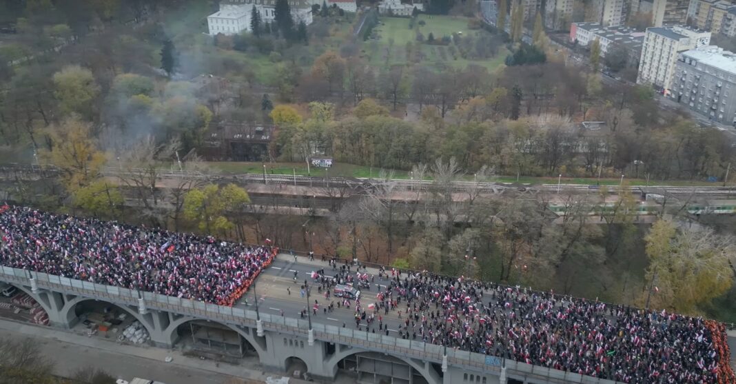 Илјадници граѓани вчера вееја црвено-бели полски знамиња, додека некои извикуваа „Бела Европа на братски нации!“, „Стоп за Европската Унија!“ или носеа транспаренти со натписи „Белите земји за белите луѓе“, „Стоп за масовната миграција“, „Стоп за претворањето на Полска во Украина“.