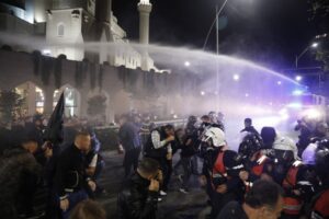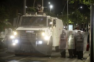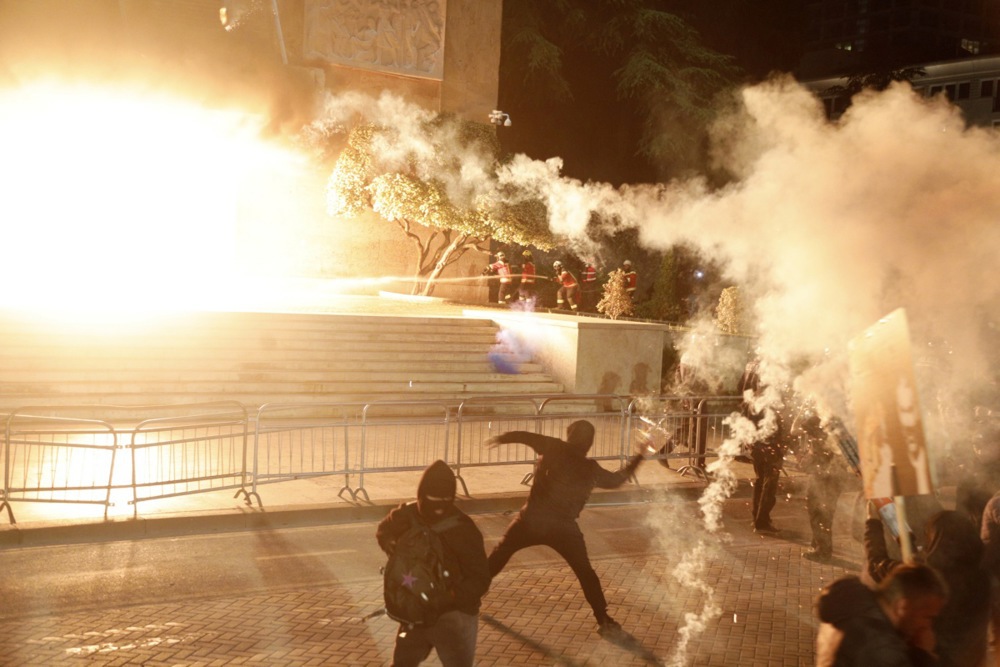Демонстрантите фрлаа Молотови коктели и пиротехнички средства кон зградата на Кабинетот на премиерот на Албанија, на што полицијата одговори со водни топови. Според демонстрантите, биле употребени солзавец и спреј.