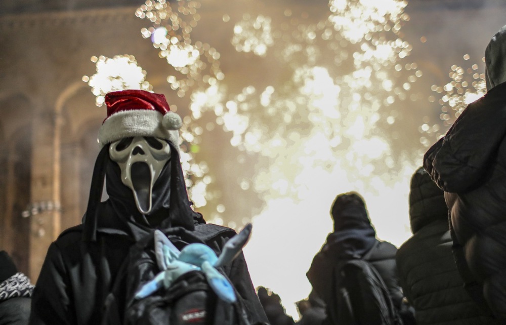 Многу демонстранти носат гас-маски и импровизирани покривки за лицата за да не бидат идентификувани, а полицијата во главниот град Тбилиси против насилните демонстранти користи водени топови и солзавец. Демонстрантите фрлаат пиротехнички средства на полицијата и се обидуваат со ласери да ги заслепат полицајците и надзорните камери.