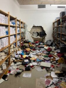 Крадците провалиле во трезорот на банката, најверојатно во недела навечер, пробивајќи го ѕидот користејќи специјални дупчалки од соседниот паркинг. Сведоците виделе тројца маскирани мажи кои избегале со ауди Р6, со претходно украдени регистарски таблички во Хановер.